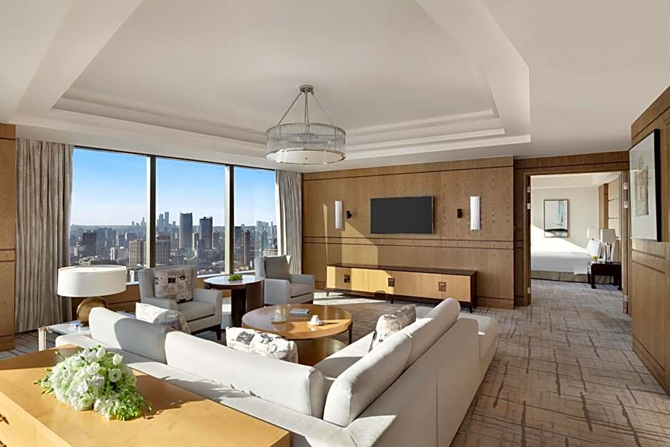 These spacious rooms are luxurious, simple and elegant, offers a city view through floor-to-ceiling windows, marble-clad double sinks with separated shower and bathtub.